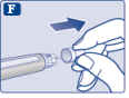 • Retirez le capuchon interne de l’aiguille et jetez-le. Si vous essayez de le remettre, vous risquez de vous piquer accidentellement avec l’aiguille. |