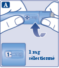 • Tournez le sélecteur de dose afin de sélectionner 1 mg. |