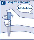 • Comptez lentement jusqu’à 6 en maintenant le bouton de dose enfoncé. |