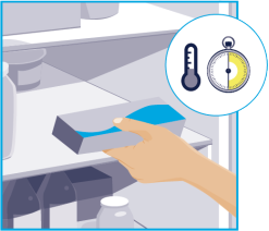 - Sortez la boîte du réfrigérateur et laissez-la à température ambiante, à l’abri de la lumière directe du soleil, pendant 30 à 90 minutes avant l’injection.