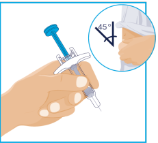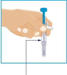 ÉTAPE 3 | Tenez la seringue en dirigeant l’aiguille protégée vers le bas, comme sur l’illustration ci-contre.