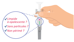 - Avant de pratiquer l’injection, demandez à votre médecin ou infirmier/ère de vous montrer comment utiliser une seringue préremplie. Votre médecin ou infirmier/ère doit s’assurer que vous utilisez correctement votre seringue.