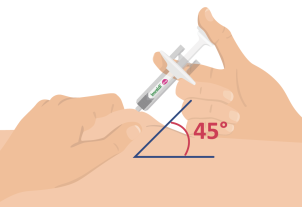 Pincez doucement votre peau et introduisez toute l’aiguille sous un angle d’environ 45 degrés.
