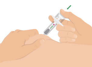 Lors du choix du site d’injection, préférez une zone qui n’a pas été utilisée récemment pour éviter les douleurs et les contusions. - Poussez lentement le piston :