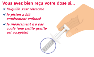 Une fois que vous aurez poussé entièrement le piston, l’aiguille se rétractera pour prévenir tout risque de blessure par piqûre.