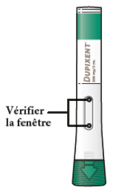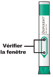 Regardez le médicament à travers la fenêtre sur le stylo prérempli.