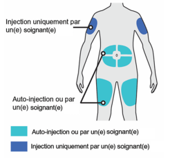 - Partie supérieure du bras Si une autre personne effectue l’injection, elle peut aussi la faire dans la partie supérieure de votre bras.