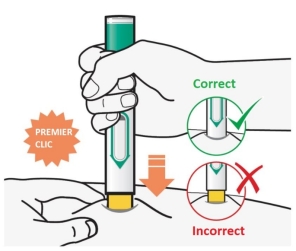 - Soulevez ensuite le stylo de la peau, l’injection est terminée.