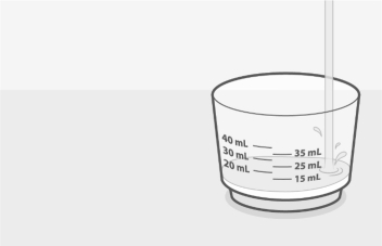 Vous devez administrer la dose de médicament dans les 30 minutes suivant la préparation de la dose. Si la dose a été préparée depuis plus de 30 minutes, éliminez l’intégralité de la dose contenue dans le godet avec de l’eau et préparez une nouvelle dose de médicament. |