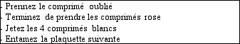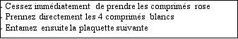 - Les 4 comprimés blancs ne contiennent pas de substance active et sont des comprimés placebos.