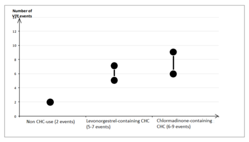 - Une augmentation du risque d'événement thrombotique et thrombo-embolique artériel et veineux, incluant l’infarctus du myocarde, l’AVC, les accidents ischémiques transitoires, la thrombose veineuse et l’embolie pulmonaire, a été observée chez les femmes utilisant des CHC. Ceci est abordé plus en détails en rubrique 4.4.