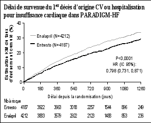 Dans PARADIGM-HF, l’altération de la fonction rénale a été rapportée chez 10,1 % des patients traités par sacubitril/valsartan et 11,5 % des patients traités par énalapril.