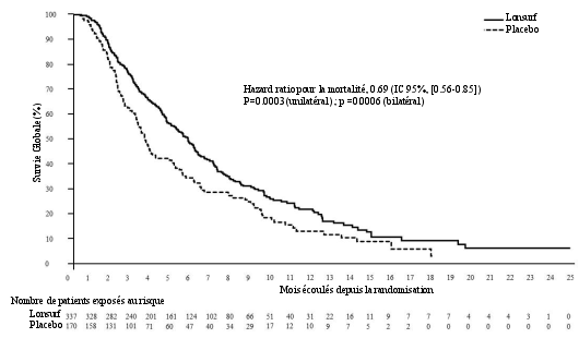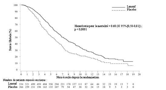 Lonsurf est indiqué en association au bévacizumab chez les adultes atteints d’un cancer colorectal métastatique (CCRm) précédemment traités par deux protocoles de traitement comprenant les chimiothérapies à base de fluoropyrimidine, d’oxaliplatine et d’irinotecan, les agents anti-VEGF et/ou les agents anti-EGFR,