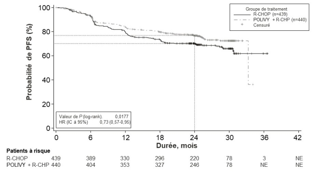 Chez des patients présentant un LDGCB non précédemment traité, traités par Polivy plus R-CHP :