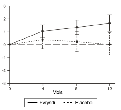 Evrysdi est indiqué dans le traitement de l’amyotrophie spinale (SMA) 5q chez les patients avec un diagnostic clinique de SMA de Type 1, Type 2 ou Type 3 ou avec une à quatre copies du gène SMN2.