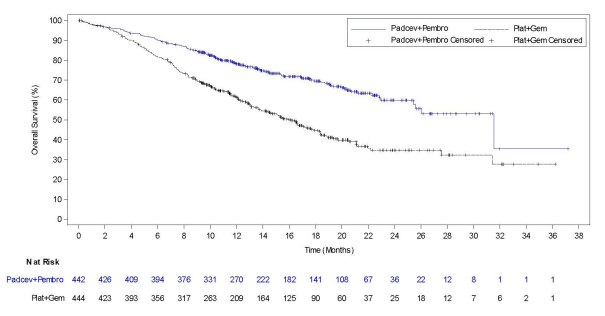 Padcev, en association avec le pembrolizumab, est indiqué dans le traitement de première ligne des patients adultes atteints de carcinome urothélial non résécable ou métastatique et éligibles à une chimiothérapie à base de sels de platine.
