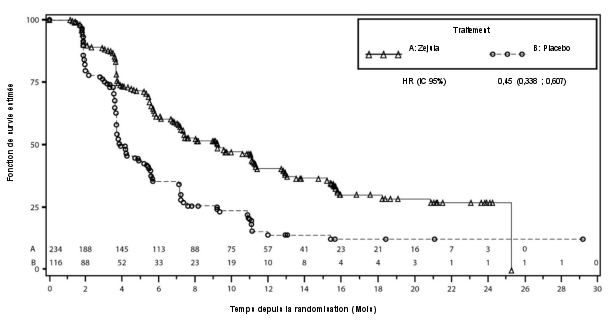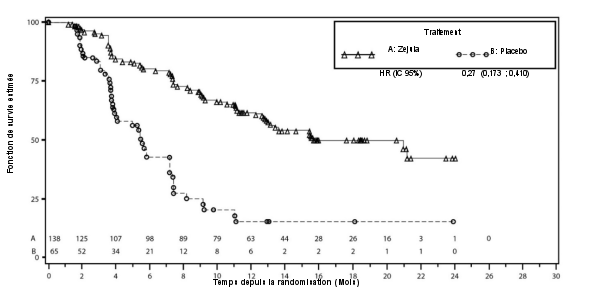 traitement et de reprendre à une dose plus faible. Si les effets indésirables persistent au-delà de 28 jours après l’interruption du traitement, il est recommandé d’arrêter Zejula. Si les effets indésirables ne peuvent pas être contrôlés avec cette stratégie d’interruption et de réduction de dose, il est recommandé d’arrêter Zejula.