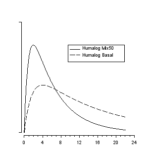 La rapidité d'action et le pic d'activité précoce propres à Humalog lui-même sont observés après administration sous-cutanée d'Humalog Mix50. Ceci permet d'administrer une injection d'Humalog Mix50 à un moment proche des repas. La durée d'action de la composante insuline lispro protamine en suspension dans Humalog Mix50 est proche de celle d'une insuline basale (isophane).