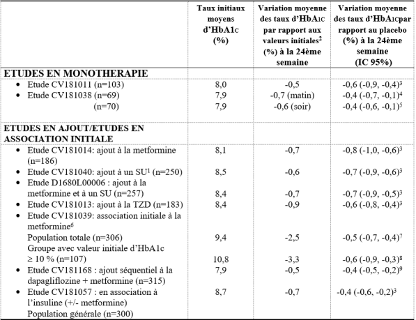 Les effets indésirables d'hypoglycémie sont basés sur tous les cas d’hypoglycémie rapportés ; la mesure concomitante de la glycémie n’était pas requise.
