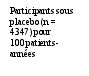 Nombre total de sujets présentant des événements, n (%) | 47 (1,1) | 140 (2,4) |