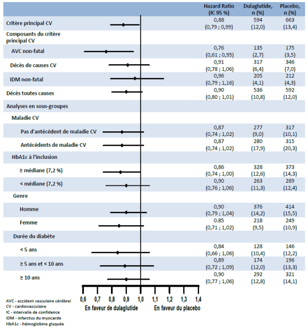 Tableau 1. Fréquence des effets indésirables du dulaglutide