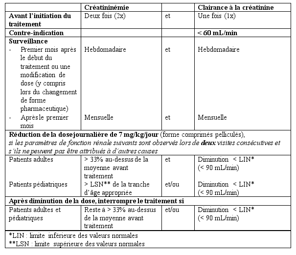 Les doses (en mg/kg de poids corporel) doivent être calculées et arrondies au comprimé le plus proche.