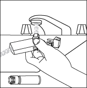 - Um die ordnungsgemäße Funktion beim ersten Mal sicherzustellen, schütteln Sie ihn kräftig, richten das Mundstück von sich weg und drücken auf die Patrone, um 2 Sprühstöße in die Luft abzugeben.