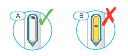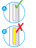 Verwenden Sie den Fertigpen nicht, wenn das Fenster durchgehend gelb erscheint. Das durchgehende Gelb im Fenster bedeutet, dass das Medizinprodukt verwendet wurde.