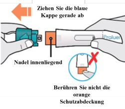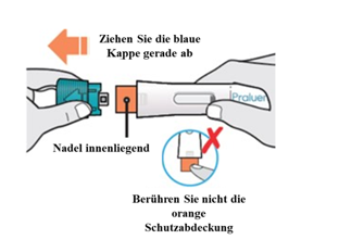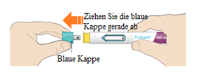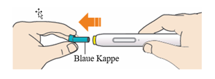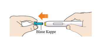 Ziehen Sie die blaue Kappe nicht ab, bis Sie für die Injektion bereit sind.