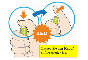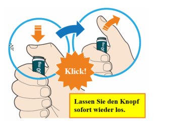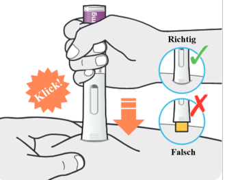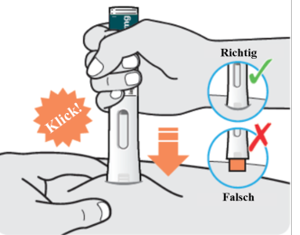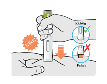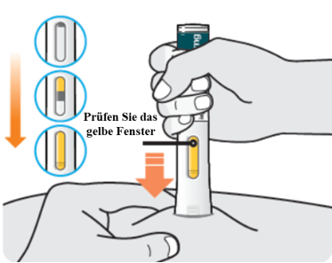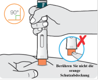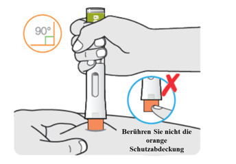 Die Injektion erfolgt erst, wenn die orange Schutzabdeckung vollständig eingedrückt ist.
