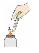 - Drücken Sie den Fertigpen nicht gegen Ihre Haut, bis Sie zur Injektion bereit sind.