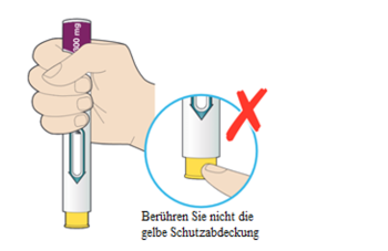 Die Injektion erfolgt erst, wenn die gelbe Schutzabdeckung vollständig eingedrückt ist.