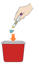 a Entsorgen Sie den Fertigpen und die Kappe unmittelbar nach der Anwendung in ein durchstichsicheres Behältnis.