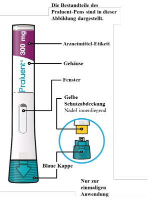 - Dieses Medizinprodukt ist ein Fertigpen zur einmaligen Anwendung. Es enthält 300 mg Praluent (Alirocumab) in 2 ml Lösung.