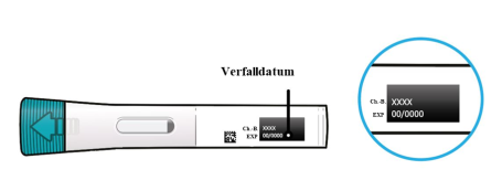 Den Fertigpen im Umkarton aufbewahren, um den Inhalt vor Licht zu schützen.