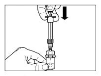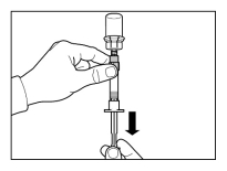 - Na toevoeging van de drageroplossing voor reconstitutie, laat de injectieflacon 5 minuten staan om zeker te zijn dat het poeder volledig verzadigd is.