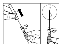 - De injectie set moet op kamertemperatuur komen. Verwijder de injectieset uit de koelkast en laat de set bij kamertemperatuur gedurende ten minste 30 minuten staan vóór reconstitutie, maar niet langer dan 24 uur.