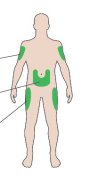 - Kies een injectieplek zoals getoond in het plaatje.