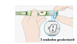 - Wanneer u niet uw volledige voorgeschreven dosis kunt selecteren, splits dan de dosis in twee injecties of gebruik een nieuwe pen.