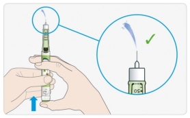 - Wanneer er insuline uit de punt van de naald komt, werkt uw pen goed.