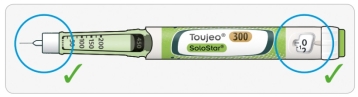 - Gebruik alleen naalden die geschikt zijn voor gebruik met Toujeo (bijvoorbeeld naalden van BD, Ypsomed, Artsana of Owen Mumford).
