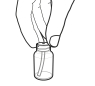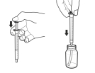 - Haal de veiligheidsdop van de fles door de lippen aan de dop in te drukken en de dop los te draaien. Steek de spuitadapter in de fles totdat de adapter gelijk ligt met de bovenkant van de fles. Probeer niet om de spuitadapter uit de fles te verwijderen nadat de adapter aangebracht is.
