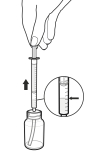 - Zuig precies zo veel Rapamune-drank uit de fles op als uw arts u voorgeschreven heeft: trek voorzichtig aan de zuiger van de doseerspuit totdat het niveau van de oplossing gelijk is aan de juiste markering op de doseerspuit. Houd de fles rechtop terwijl u de oplossing opzuigt. Als er tijdens het opzuigen bellen in de oplossing in de doseerspuit ontstaan, spuit de Rapamune-drank dan terug in de fles en begin opnieuw met het opzuigen. U dient stap 3 mogelijk meer dan een keer te herhalen om de juiste dosis te krijgen.
