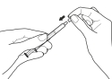 - Breng een doseerspuit met de zuiger helemaal ingedrukt in de opening van de adapter.