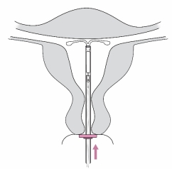 6. Duw het insertiebuisje voorzichtig naar de baarmoederfundus tot de ring tegen de cervix komt. Jaydess zit nu in de fundus. |