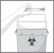 A.  | Raak de naald niet aan en zet de bodemdop niet terug. Gooi de voorgevulde pen weg in een afsluitbare prikveilige naaldencontainer. Neem contact op met uw arts, apotheker of verpleegkundige.  | |||||||||