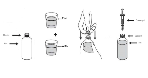 Elk restant van de suspensie dient 14 dagen na de bereiding weggegooid te worden.