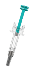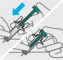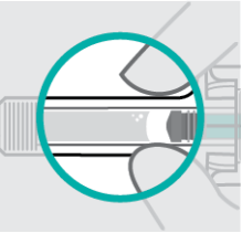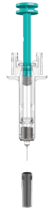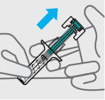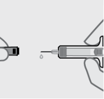 Houd de spuit vast bij de cilinder en trek de beschermdop er recht vanaf. Mogelijk ziet u een druppeltje vloeistof; dat is normaal.