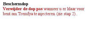 Injecteer binnen 5 minuten nadat u de beschermdop heeft verwijderd.