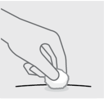 Plaats uw duim, wijsvinger en middelvinger net onder de vingersteun, zoals afgebeeld.